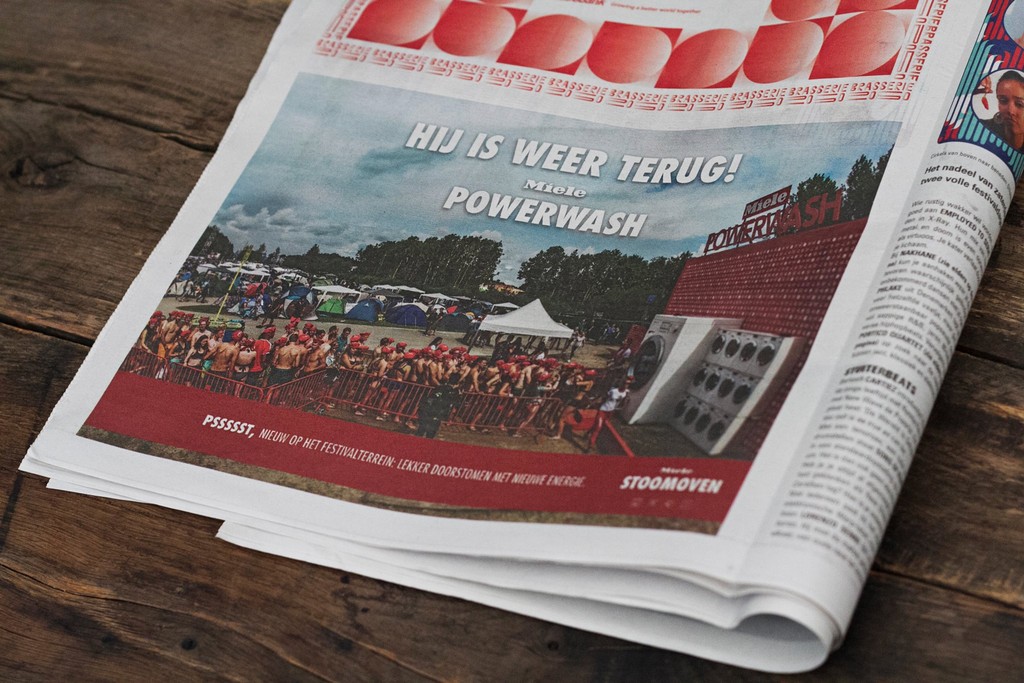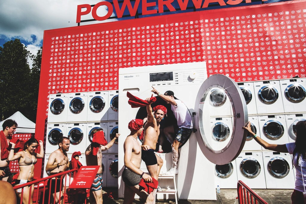 Voor Miele bedachten we het doorgedraaide alternatief voor de festivaldouche: de Miele PowerWash. In deze gigagrote wasmachine doorliep de vieze festivalganger het 3-stappen wasprogramma: wassen, spoelen, drogen. Onder begeleiding van een DJ en MC. En heel veel schuim. En bubbling tunes. En had ik al schuim gezegd? Heel veel schuim.